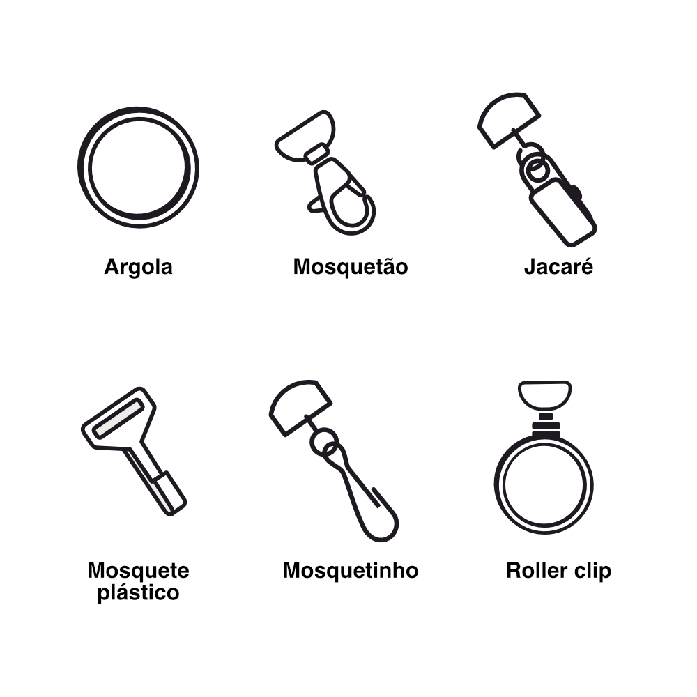 Fita de 20 mm com 85 cm de comprimento e mosquetão em metal.