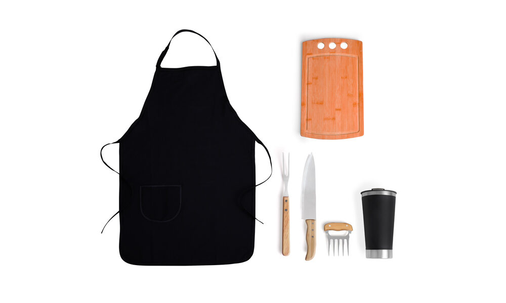 - Avental em Brim: Um avental resistente e prático para proteger suas roupas durante o preparo do churrasco.